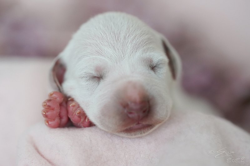 plnochrupý, nůžkový skus (full dentition, scissors bite) BEAR +/+ HD A ED 0 Spondylóza negativní (Spondylosis 0) OCD nepostižen/clear Lemon free po rodičích/by parentage (E/E) Disportionate dwarfism PRKG2 - Free (N/N)